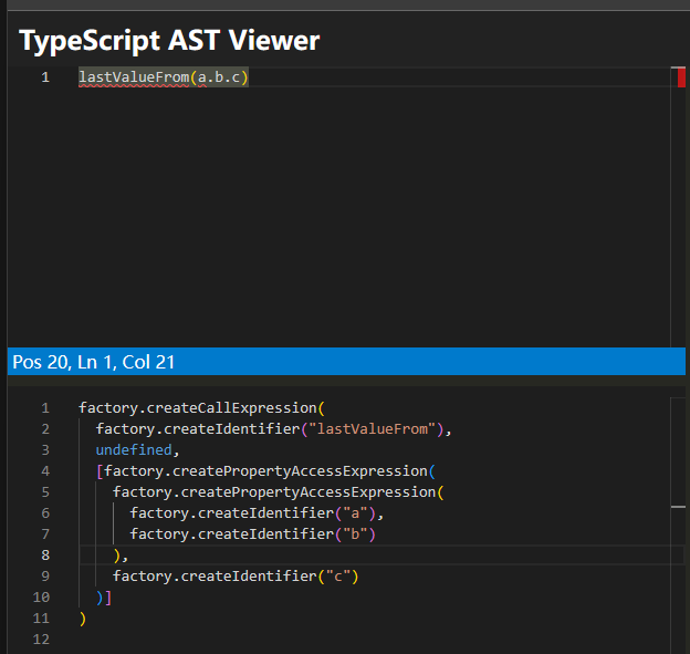 而对于lastValueFrom(a.b.c)这样的代码,则需要这样创建 AST